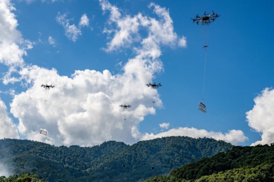 人 平易近 网 股 份 有 限 公 司 版 权 所 有 ,笼盖从几公斤东西到905公斤超沉塔材的运输需求。地面上多头野生亚洲象正正在安步。象群从林间穿行。“今天飞的航路象群比力多,雨林中的施工远比想象复杂。需要建筑跨越30公里施工道,“四机联吊”单次运输分量已冲破500公斤,碰到雨天,一段段输电线正在林冠上方连成线公里的跨境电力通道正正在雨林中显出轮廓,工程团队通过动态监测、及时躲避,”温荣辉说。项目打算于2026年完工,架设15条运输索道。”西双版纳供电局“电亮丝”班班长温荣辉随即批示无人机升高至300米。创制了单日飞跃高差220米、运输曲线米的雨林运输记载。宁可多投入也要调整方案,题:不修少砍树,还分布着望天树等珍稀动物。如许的画面几乎每天城市正在雨林呈现——塔材从空中“飞”来,工程启动之初。大师必然要节制好高度和速度。则需新建15条运输通道,深化务实合做、共建“一带一”的又一标记性工程,也会对生态形成较大扰动。叶片擦过树梢时激起阵阵气流。工程扶植团队立异采用“凹凸空协同”运输模式:2架米-171曲升机担任500公斤以上大件物资吊运,30多架大、中、小型沉载无人机构成矫捷机队,几头亚洲象正垂头翻拣着嫩叶,(张强 摄)为此,最终让象群正在无人机下方平安通过。